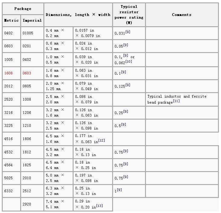 Dimension 1608 (mm) corresponds to 0603 (inch)